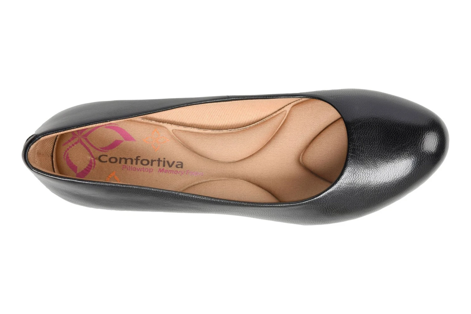 Comfortiva Amora is a chic and comfortable dress pump. The Comfortiva Amora features a memory foam footbed and heel counter, flexible outsole and 2 inch heel height perfect for any special occasion. The lightweight and flexible stacked heel adds height without compromising comfort.