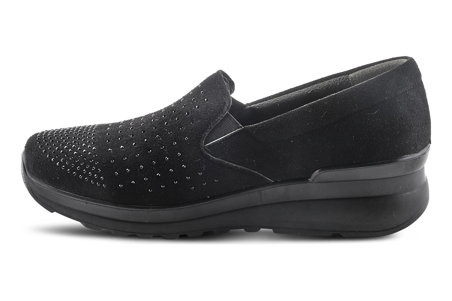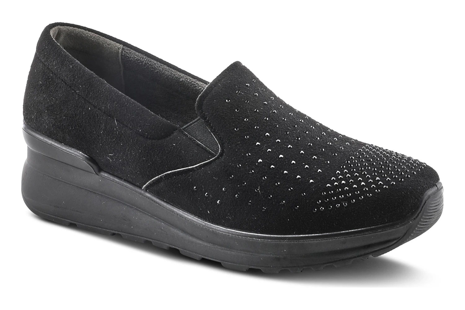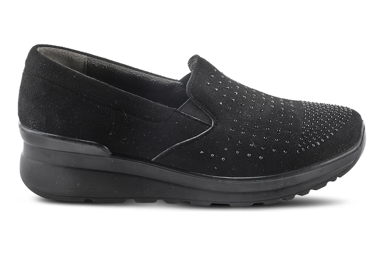 Flexus Style: Barbetta -Slip-on, fuss free design with dual side elastic gore and tonal rhinestones for a bit of added glam. Don?t forget the added comfort and a padded insole.