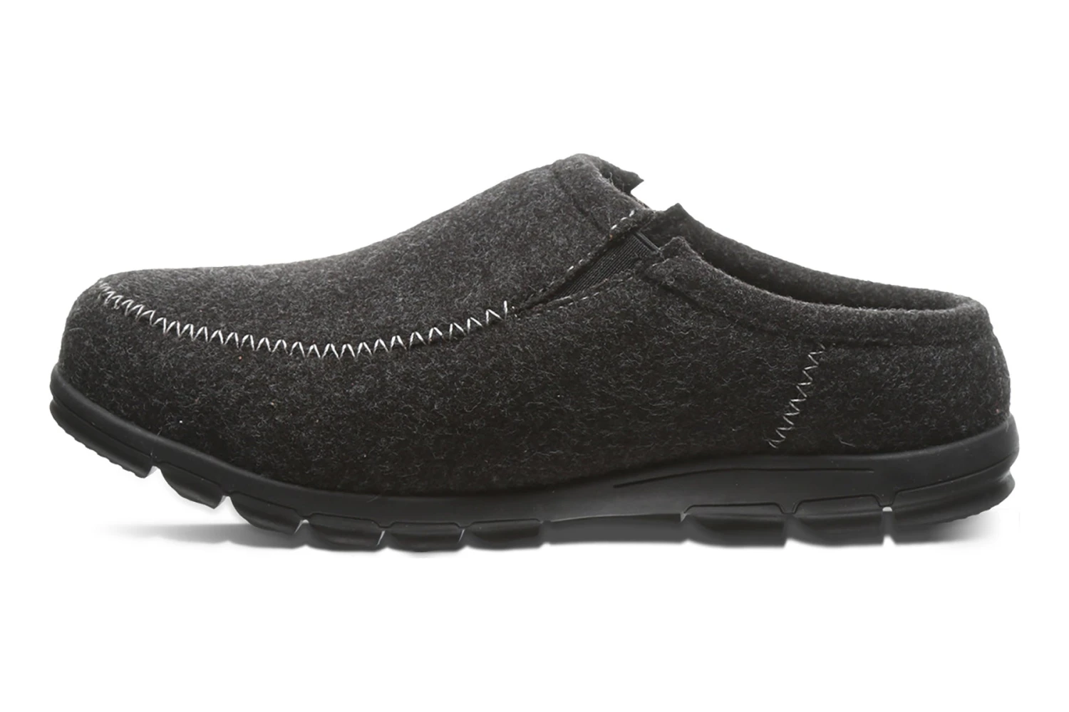 Bearpaw Azalea is a sturdy and comfortable wool clog slipper. These trendy clogs feature boiled wool uppers, a shearling footbed and durable rubber outsole. A plush wool lining provides comfort and warmth, while contrast stitching accents offer a fashionable appearance.