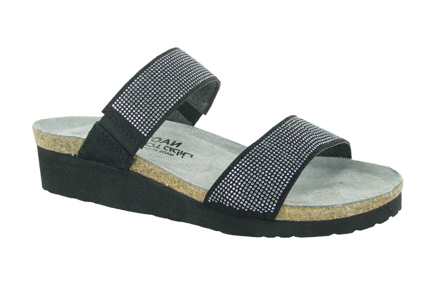 Put your best foot forward in the women’s Naot Bianca slide. Two embellished straps at the forepart and instep secure the foot in place. The suede-covered, cork and latex footbed is shock absorbent and contours to the shape of the foot for a personalized fit with wear