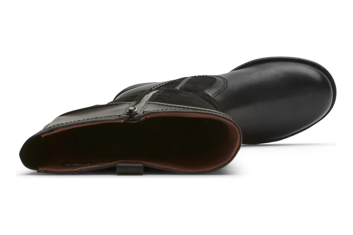 Cobb Hill Brunswick Tall is a durable and cozy tall boot. Features include leather and suede uppers, weatherproof construction and a grippy TR lug outsole. A textile footbed cover and lining are breathable, while inside zippers offer easy on and off.