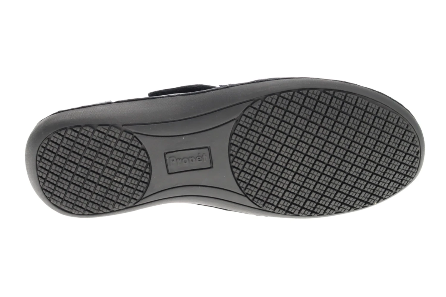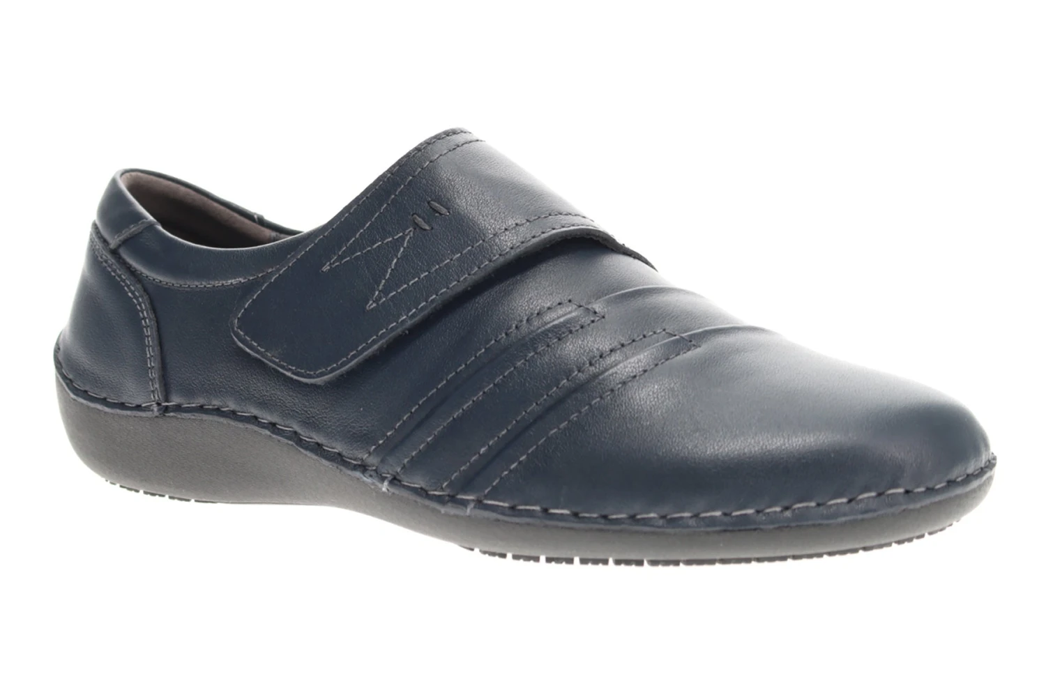 - Full leather upper with wide hook and loop strap closure for easy on and off.
