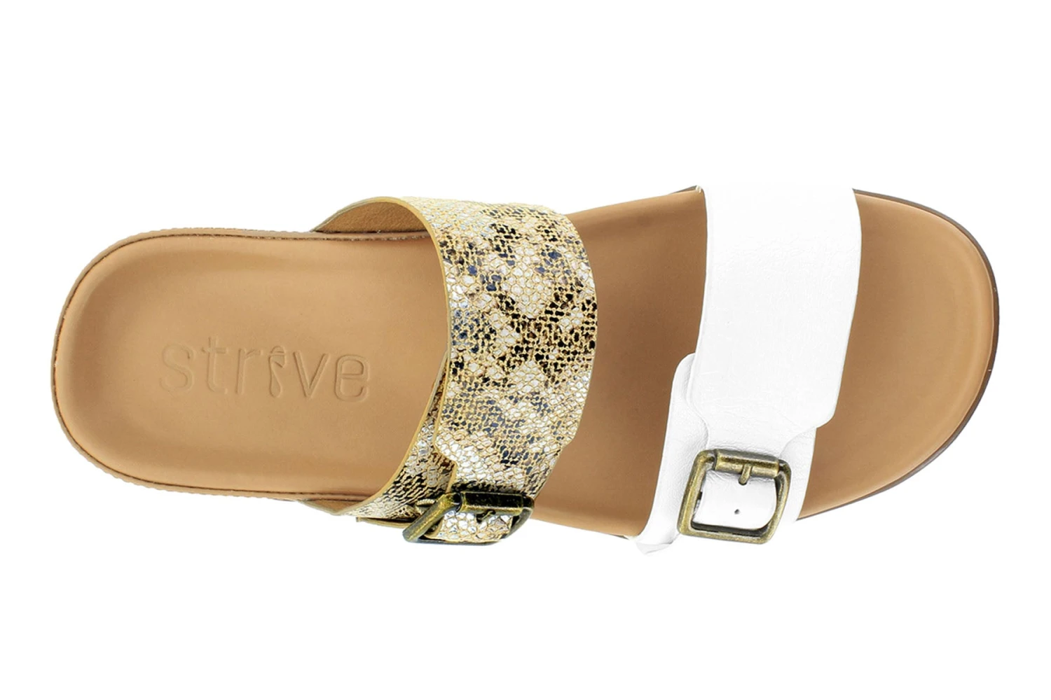 Strive Caprera is a chic and comfortable slide sandal. Prominent features include natural leather uppers, lightweight EVA midsole and durable rubber outsole. Adjustable buckle straps, memory foam footbed and cushioned microfiber lining will make these slides a new favorite.