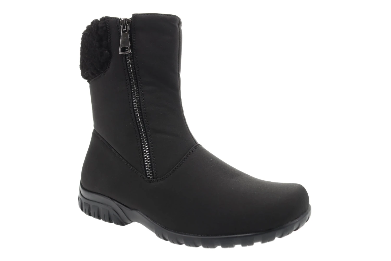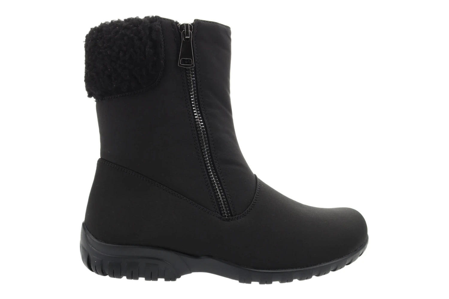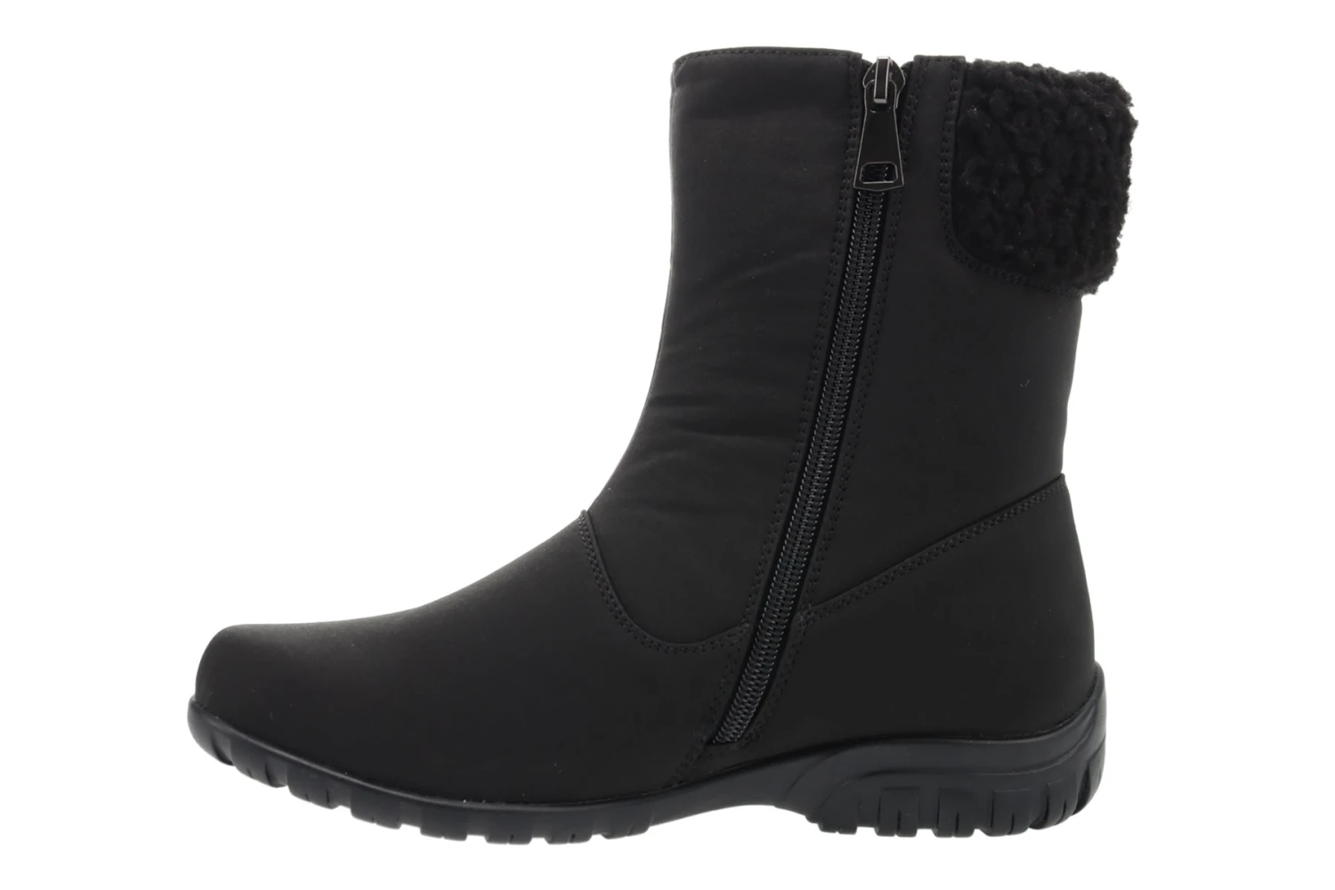 Propet Dani Mid is a warm and comfortable winter boot. Features include a waterproof nylon upper, double insoles, EVA spacer and flexible rubber outsole. A side zipper, soft sherpa lining, 7-inch shaft height and padded footbed will make these boots a cold weather staple.
