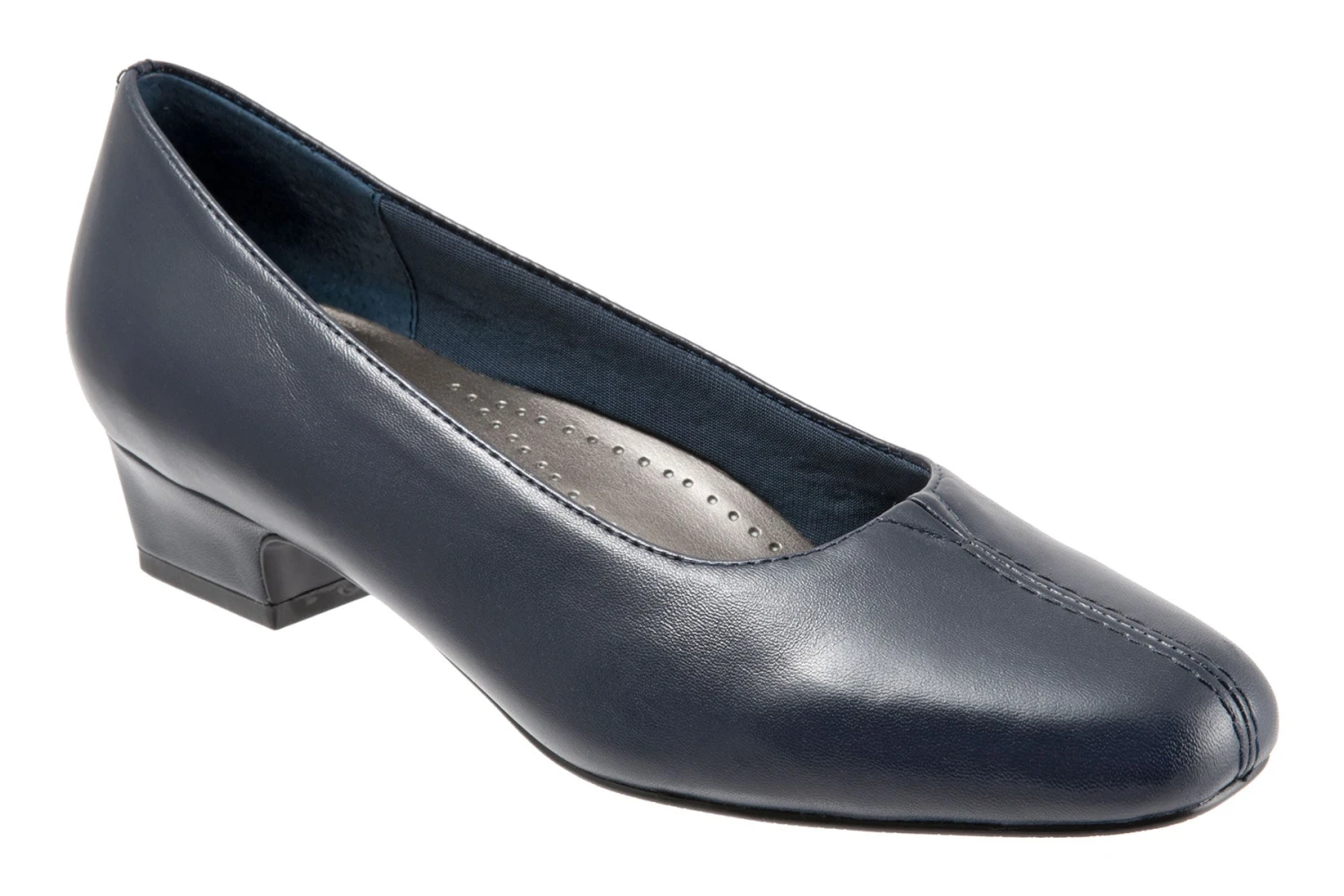 The women’s Trotters Doris dress pump will power you through the workweek in sophistication and unparalleled comfort The leather upper features a hidden elastic gore detail for an easy on and off wear.