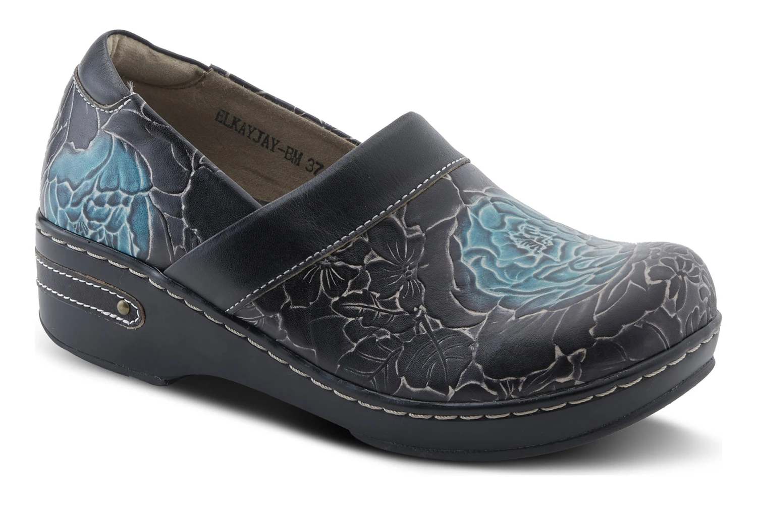 L`Artiste Style: Elkayjay -Premium hand selected embossed leathers featuring hand painted rose design in soft but striking contrast colors. Inside stretch “V” gore for easy Slip-on convenience and so much soft interior padding you’ll forget you’re wearing shoes!