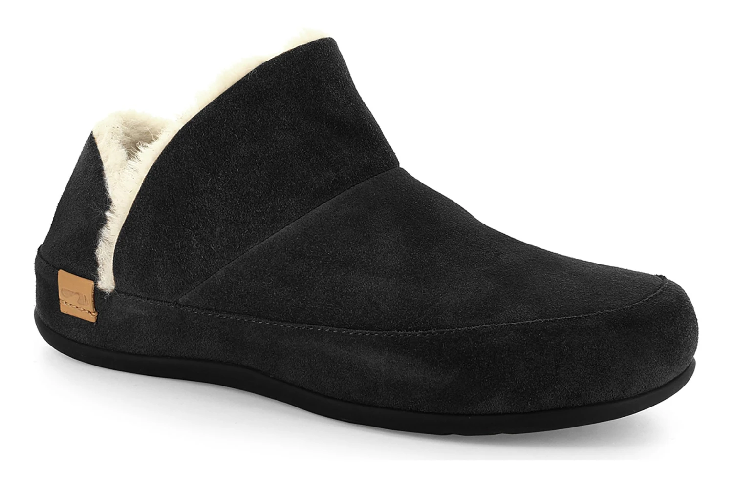 Strive Geneva is a warm and cozy slipper. These comfortable house shoes have suede leather uppers, faux fur linings, textile insoles and durable rubber outsole. A lightweight EVA midsole, supportive footbed technology and round toe silhouette makes these slippers ideal for cold weather days and nights.