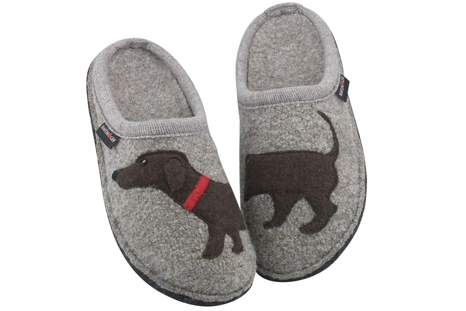 Haflinger Doggy is a comfortable, whimsical and cozy slipper. Features include boiled wool uppers, latex molded midsole and a sturdy double felted outsole. A cute wool design, latex arch support and machine washability will make these slippers a new favorite.