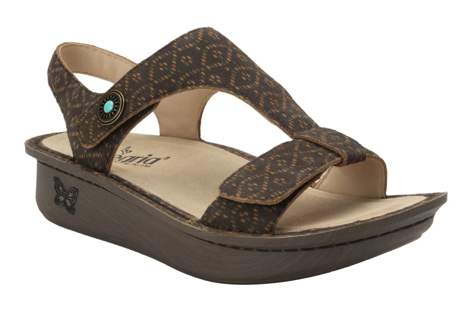 The Kerri is a comfy adjustable T-strap style sandal made on our Classic Rocker outsole, with a back ankle strap for stability and converts to wide width for versatility.