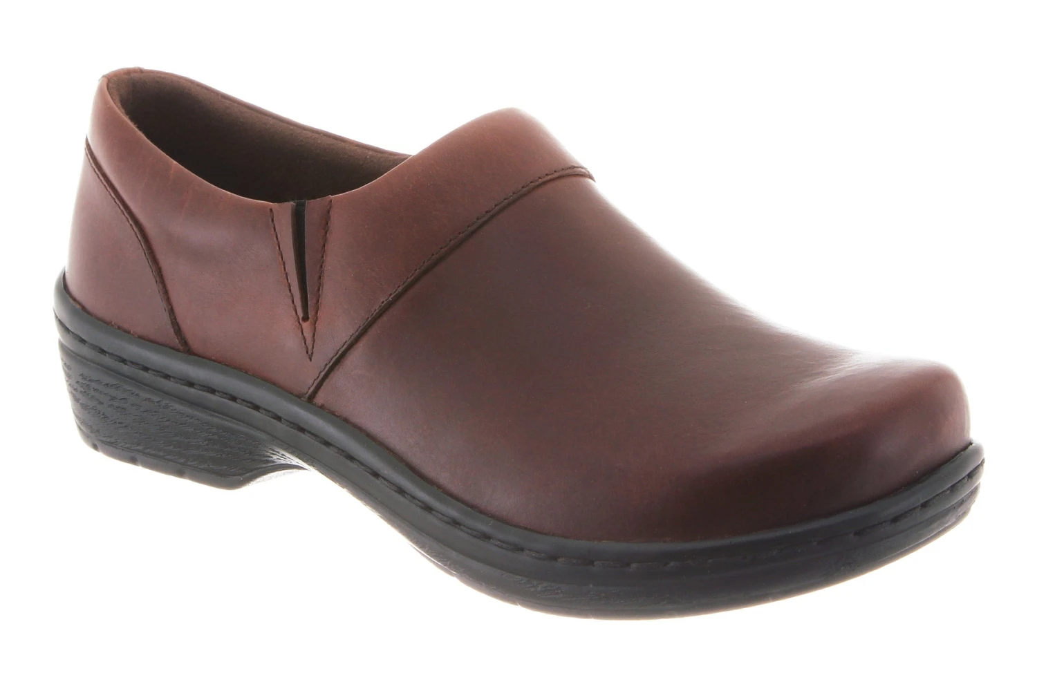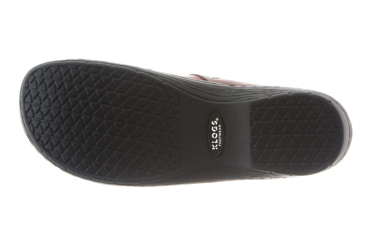 Slip into ultimate comfort in the women’s Klogs Mission slip on clog. The leather upper features dual side goring for optimal comfort. The removable, antimicrobial footbed accommodates custom orthotics and is odor resistant. The slip resistant outsole provides a substantial amount of traction and stability for long hours on your feet.