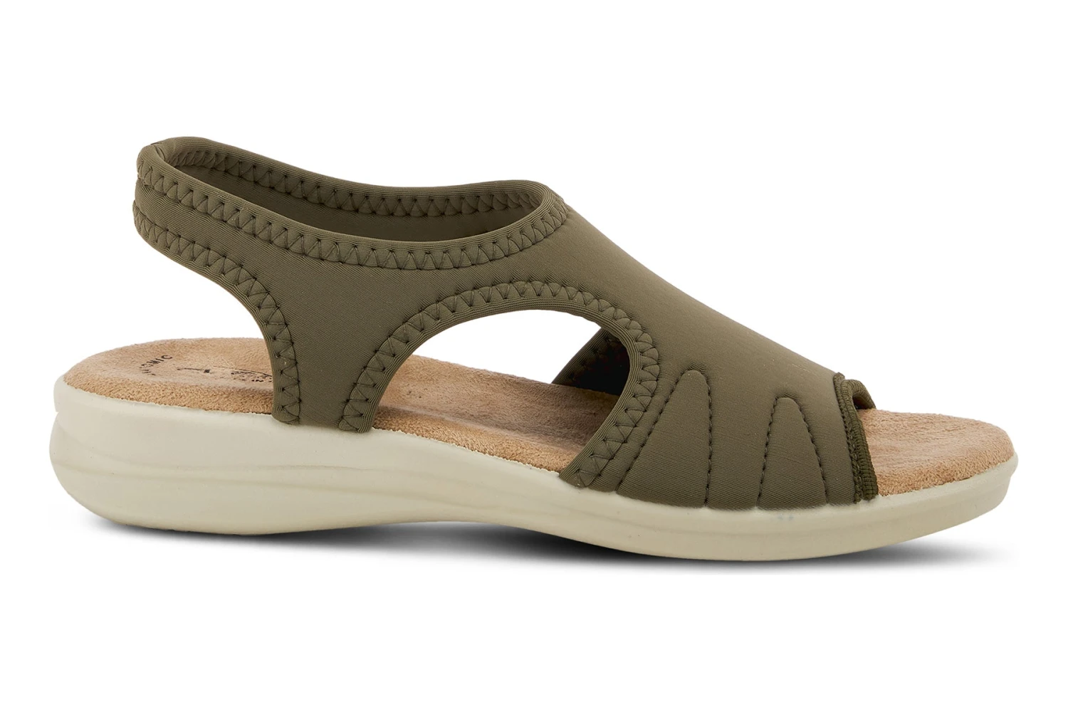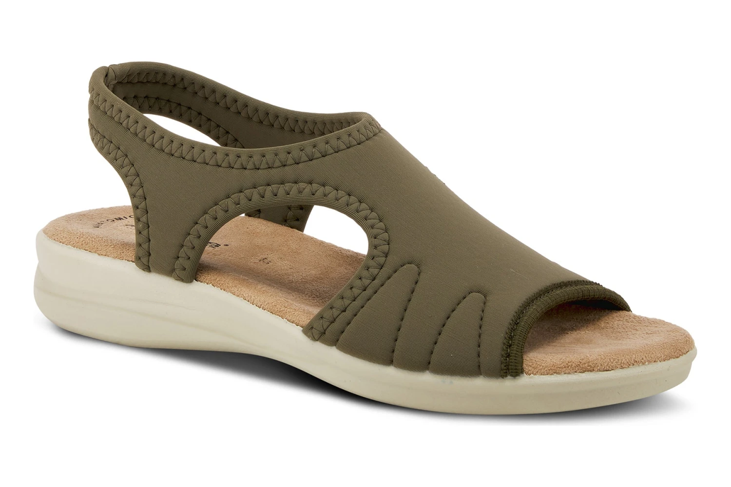 Italian-made, easy-to-slip-on lycra sandal with stitch detail. Heel Height (approximately): 1 1/2″