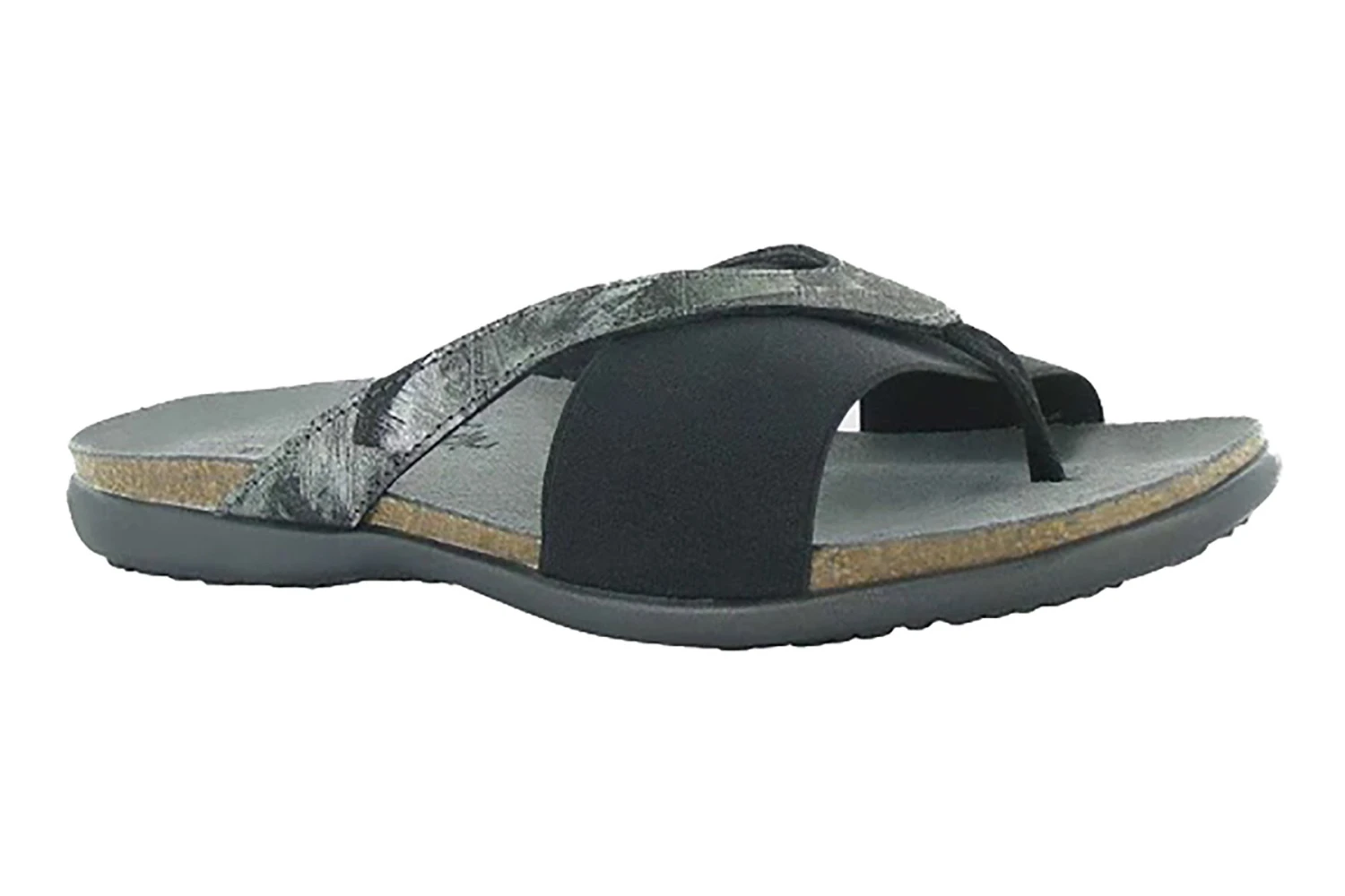 The Penelope is the perfect thong sandal to add to your sandal collection. Naot’s anatomic cork & latex footbed is wrapped in a pampering suede and molds to the shape of the foot with wear. The Flat Elegant Collection features a .75″ TPR sole.