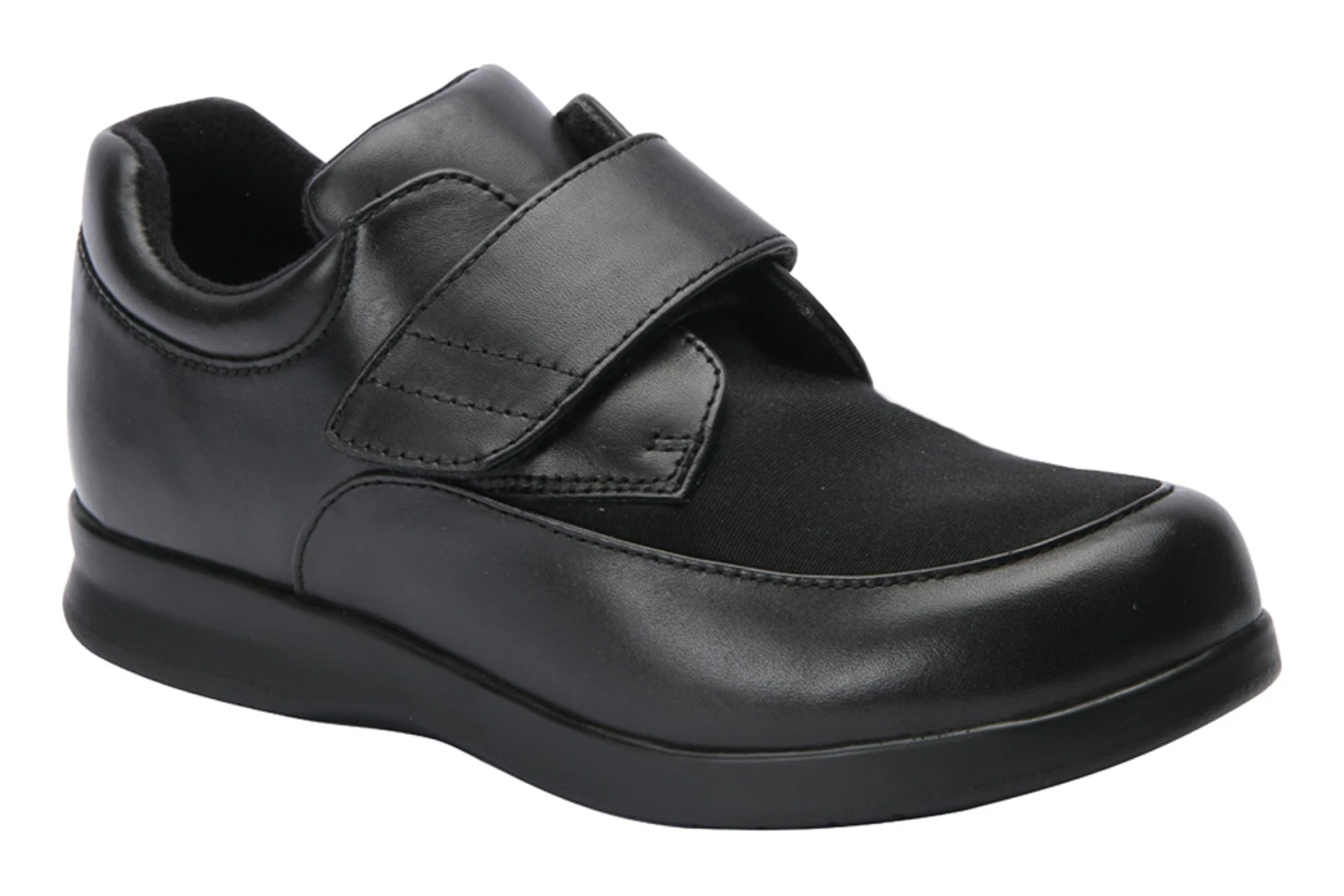 A newer addition to the Drew® brand is the Quest. The Quest by Drew is a casual shoe that features a flared outsole and wide shank, along with a soft, foam-padded tongue and collar. The Velcro® brand strap offers easy on/off and provides for a perfect fit. With smooth leather and added stretch fabric, the Quest is a winner!