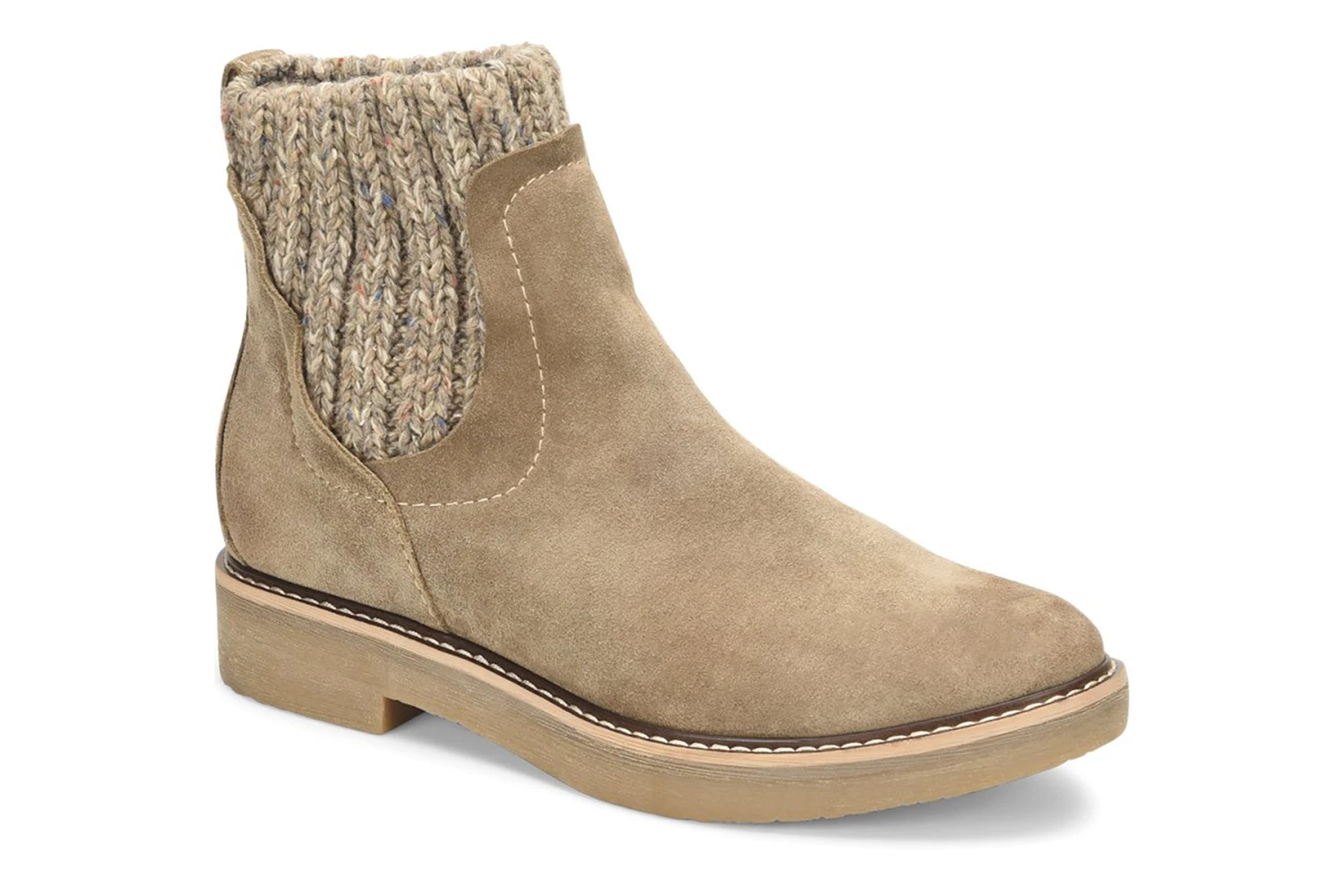 Comfortiva Rawnie is a cozy and sturdy ankle boot. A chic sweater knit shaft, removable footbed and slip-resistant TPR outsole makes these boots a favorite. Other features include a soft microfiber lining and a 2-tone welt with real stitch detail on the rubber outsole.