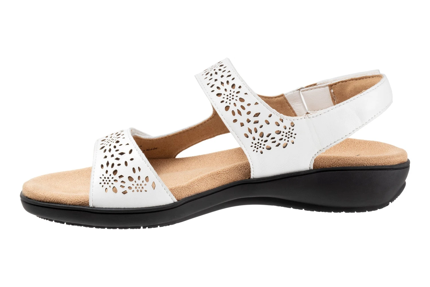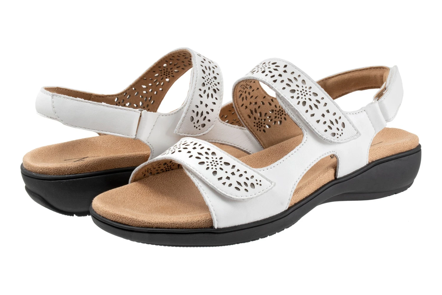 Perforated patterns and diamond edge stud hardware accentuate the adjustable straps of a fully cushioned sandal set on a comfort-focused wedge.