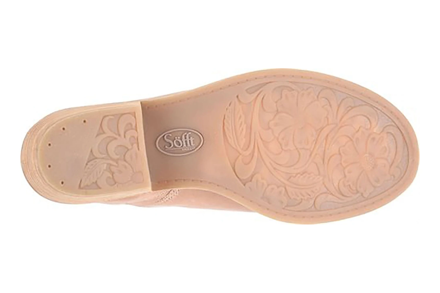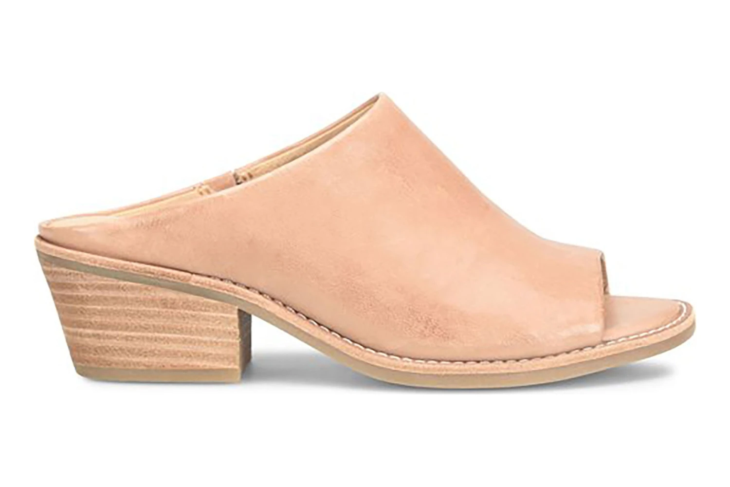 Sofft Aneesa is an elegant and comfortable women’s slide sandal. These slides have leather or suede uppers, cushioned footbed and lightweight TPR outsole. An open peep toe design, slide-on style and 2-inch stacked heel height makes these sandals a warm weather favorite.