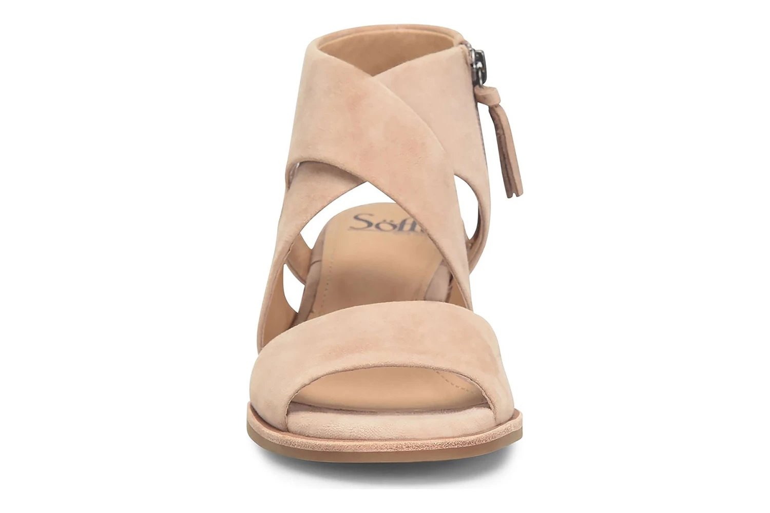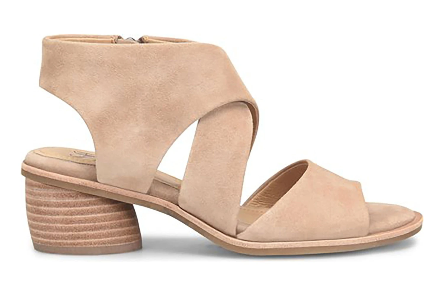 Sofft Camille is an elegant wraparound sandal for any occasion. These dress sandals have Italian leather or suede uppers, 2 inch rounded stacked heel and side zipper. A leather lining and footbed, rounded open toe and man-made TPR outsole completes these chic sandals.