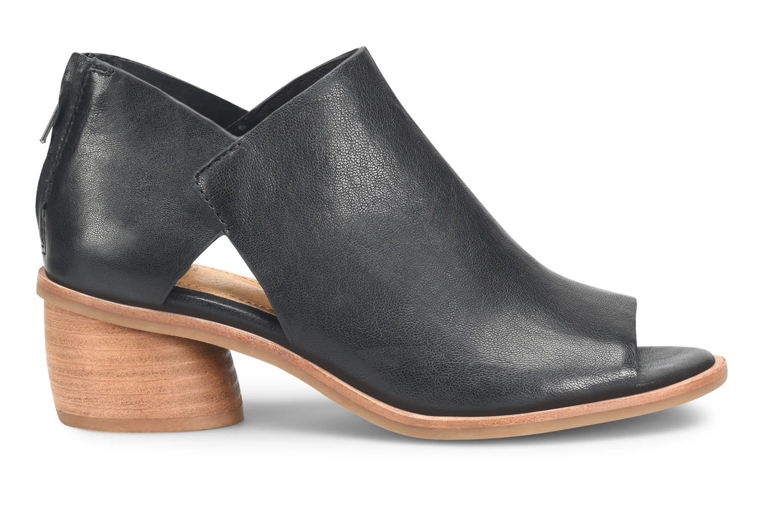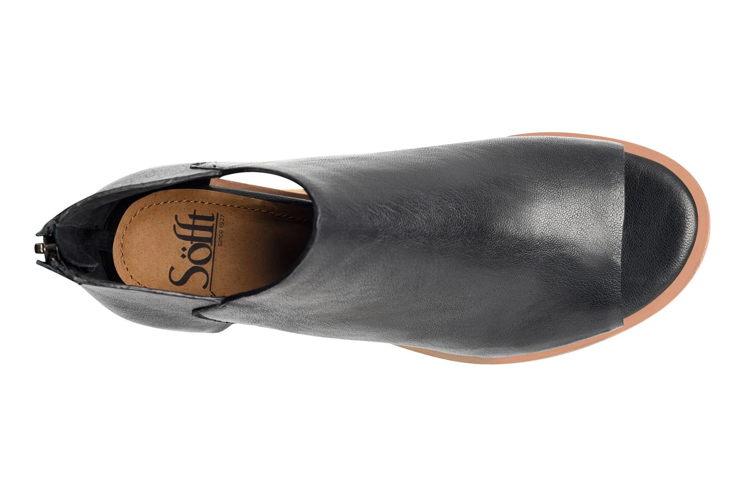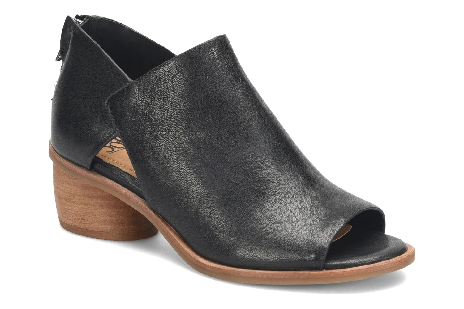 Sofft Carleigh is a trendy and comfortable shootie. These chic shoes have a leather upper with a peep toe and side cutouts, as well as a flexible TPR outsole. A back zipper, cushioned footbed and 2-inch rounded wrapped heel completes this elegant silhouette.