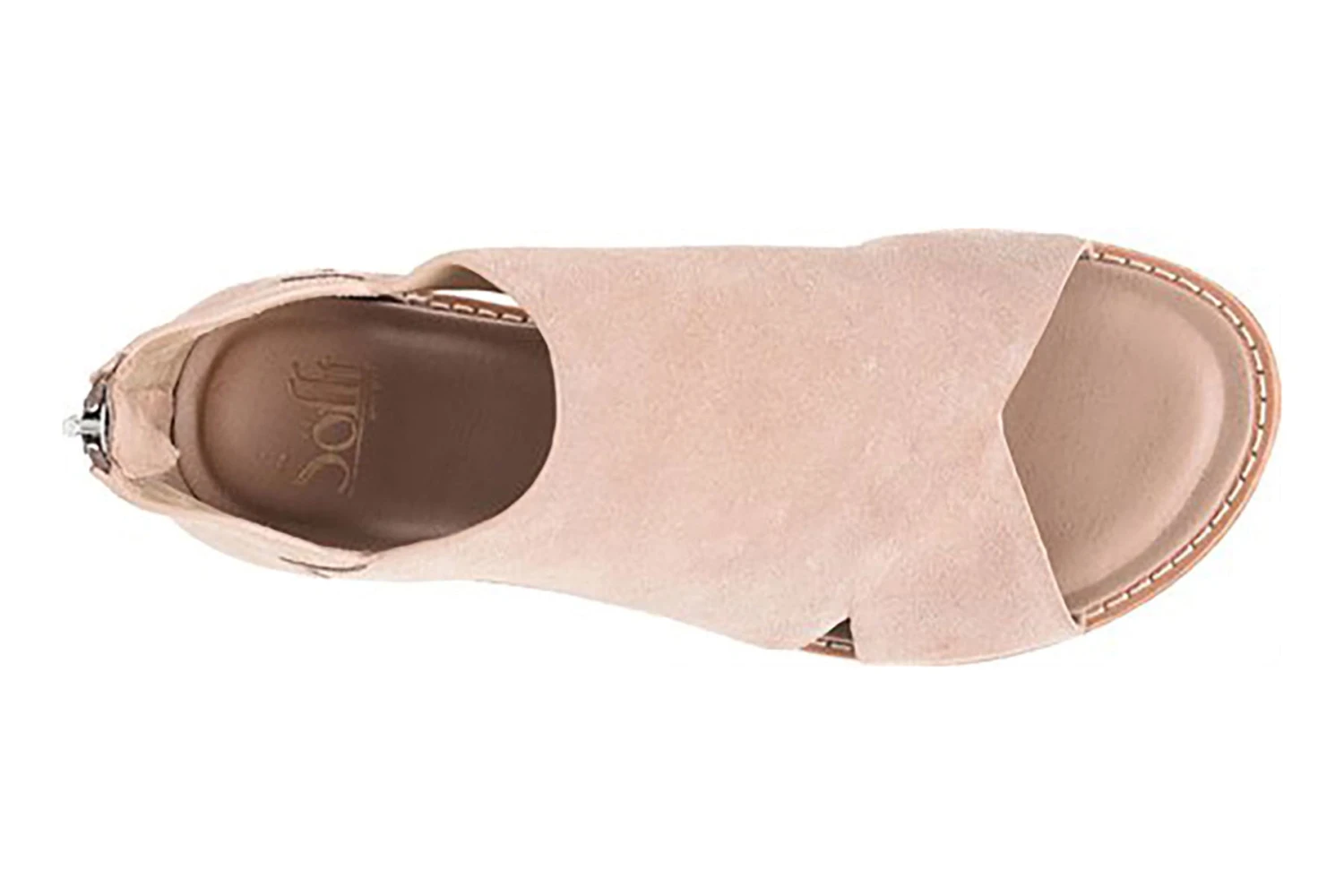 Sofft Evonne is a cozy Euro-inspired flat sandal. Italian leather uppers, back zipper, raised foam footbed and 1-inch stacked heel helps elevate these flats. These sandals feature a round, open toe design that cools feet and a long-lasting leather and synthetic lining.