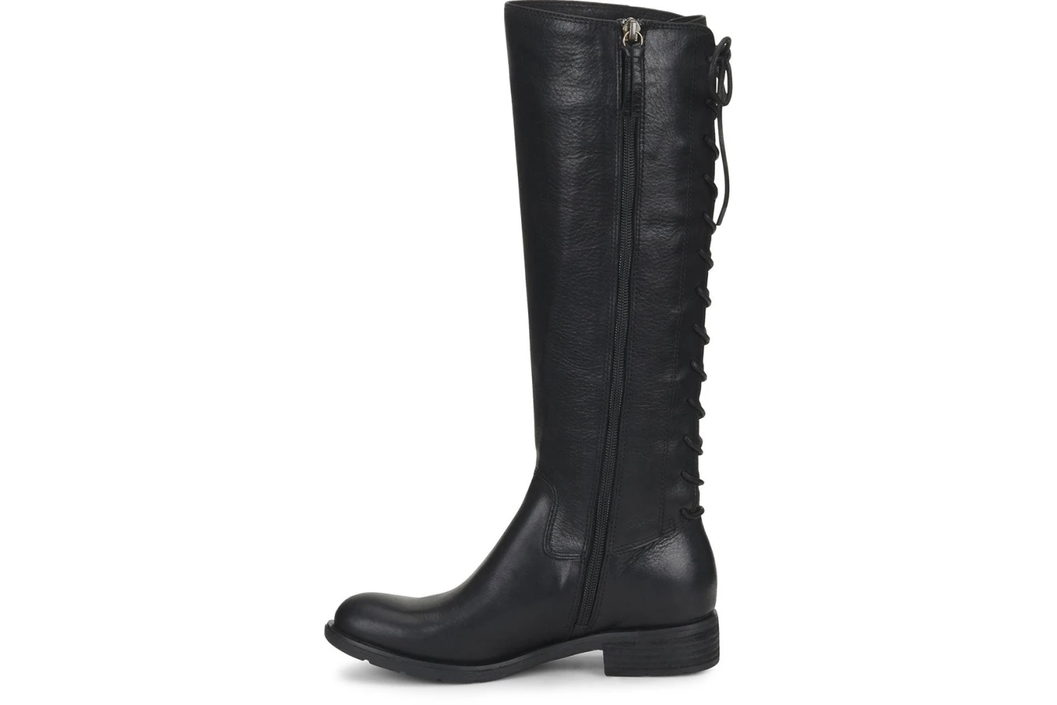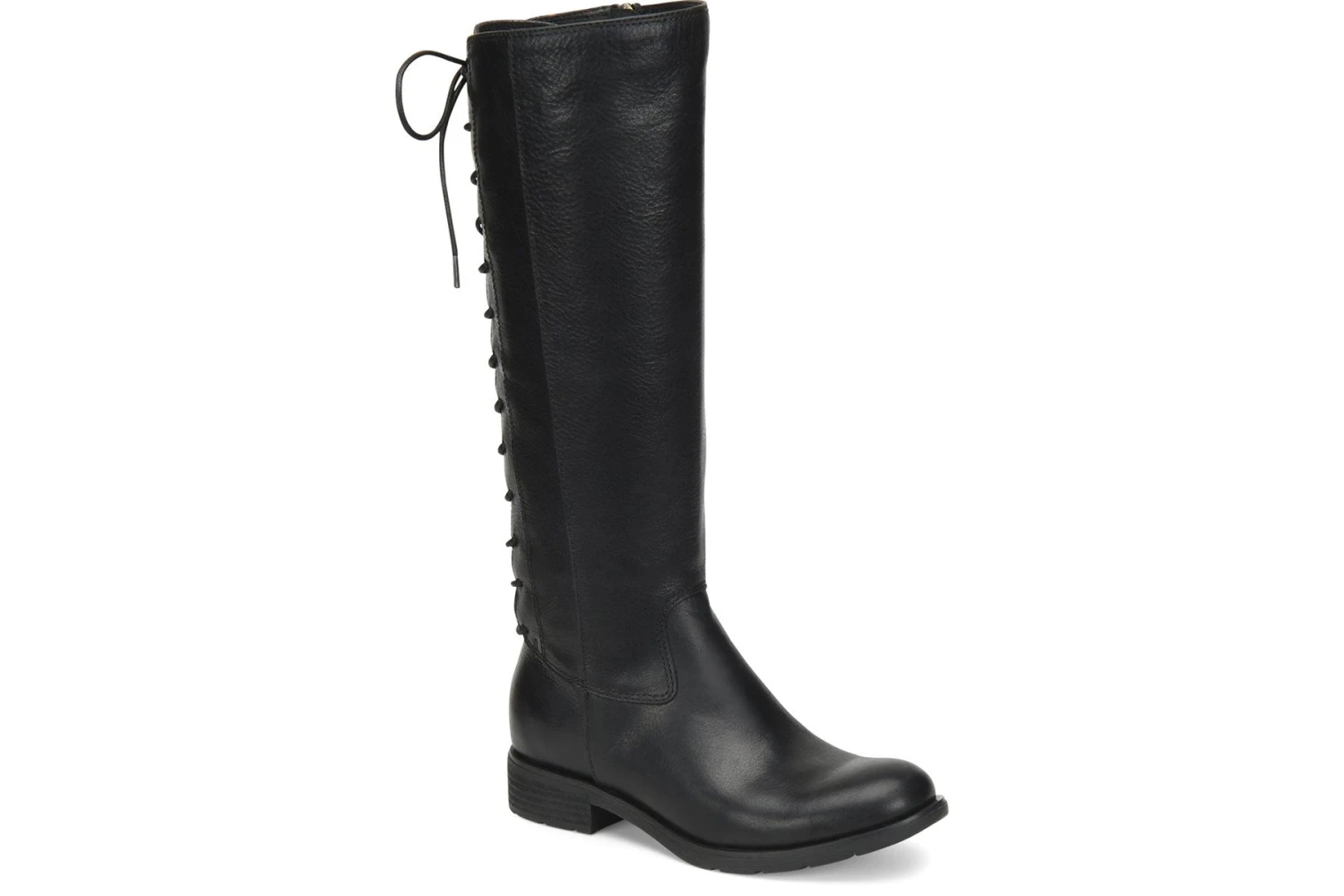 The women’s Sofft Sharnell II boot will be the perfect addition to your cold weather wardrobe. The unique lace up closure at the rear of the shaft provides a fully adjustable fit that accommodates a narrow and wider calf. A side zipper provides easy entry. The leather-covered, cushioned footbed delivers comfort in every step, while the flexible rubber outsole provides superior traction. Packed with unrivaled comfort, the Sharnell II will be a seasonal staple!