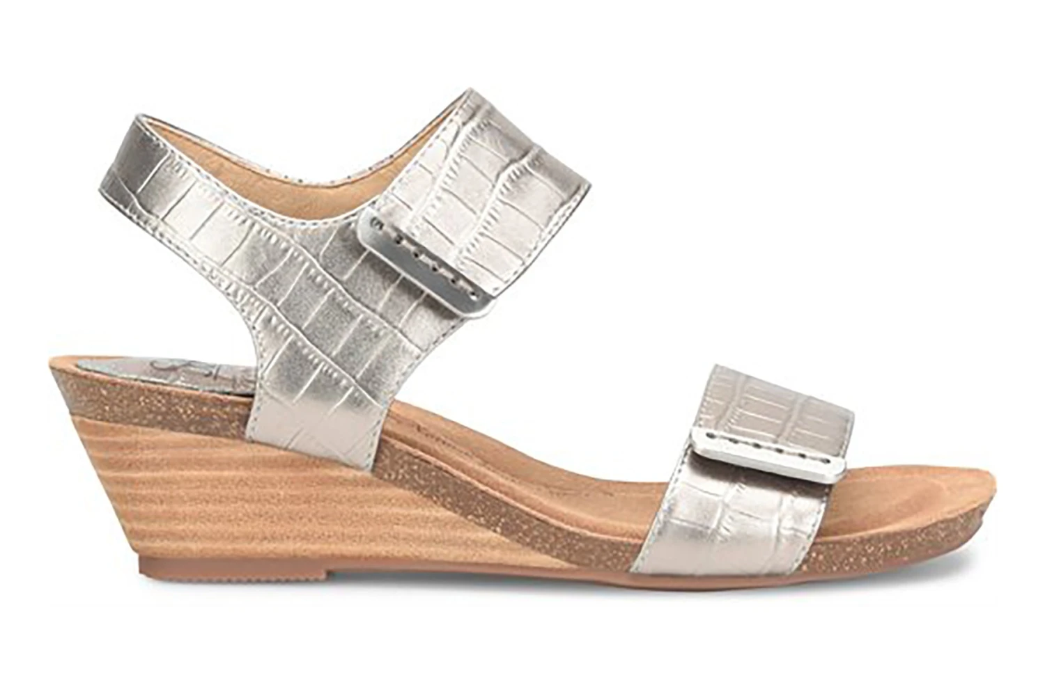 Sofft Verdi is a versatile wedge sandal focused on comfort. Enjoy a soft Italian leather upper, shock-absorbing cork midsole and 2 ¼ inch stacked wedge heel. Adjustable hook and loop straps and sturdy CPE outsole provides support and flexibility all day and night.